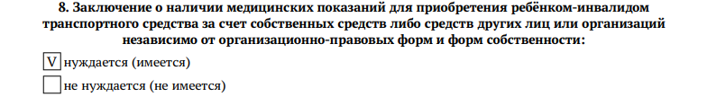 1. Оформлена инвалидность, и в ИПРА есть запись о нуждаемости в транспортном средстве и заключение о наличии медицинских показаний.
